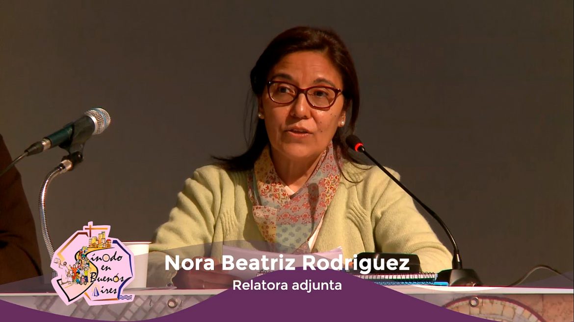Nora Rodriguez, relatora adjunta, presenta el tema de la 4° Sesión de la Asamblea Sinodal donde retomamos el diálogo y discernimiento comunitario a partir del Capítulo 4 del Documento de Trabajo: «Caminamos juntos para que la vida en Buenos Aires sea celebración y fiesta de la fe». #EnCamino #HaciendoSínodo #SínodoBsAs