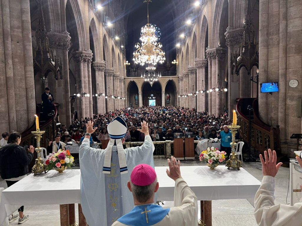 El arzobispo de Buenos Aires, Mons. Jorge García Cuerva, presidió la Eucaristía ante un templo colmado de fieles. Concelebraron con él más de una decena de obispos y sacerdotes.